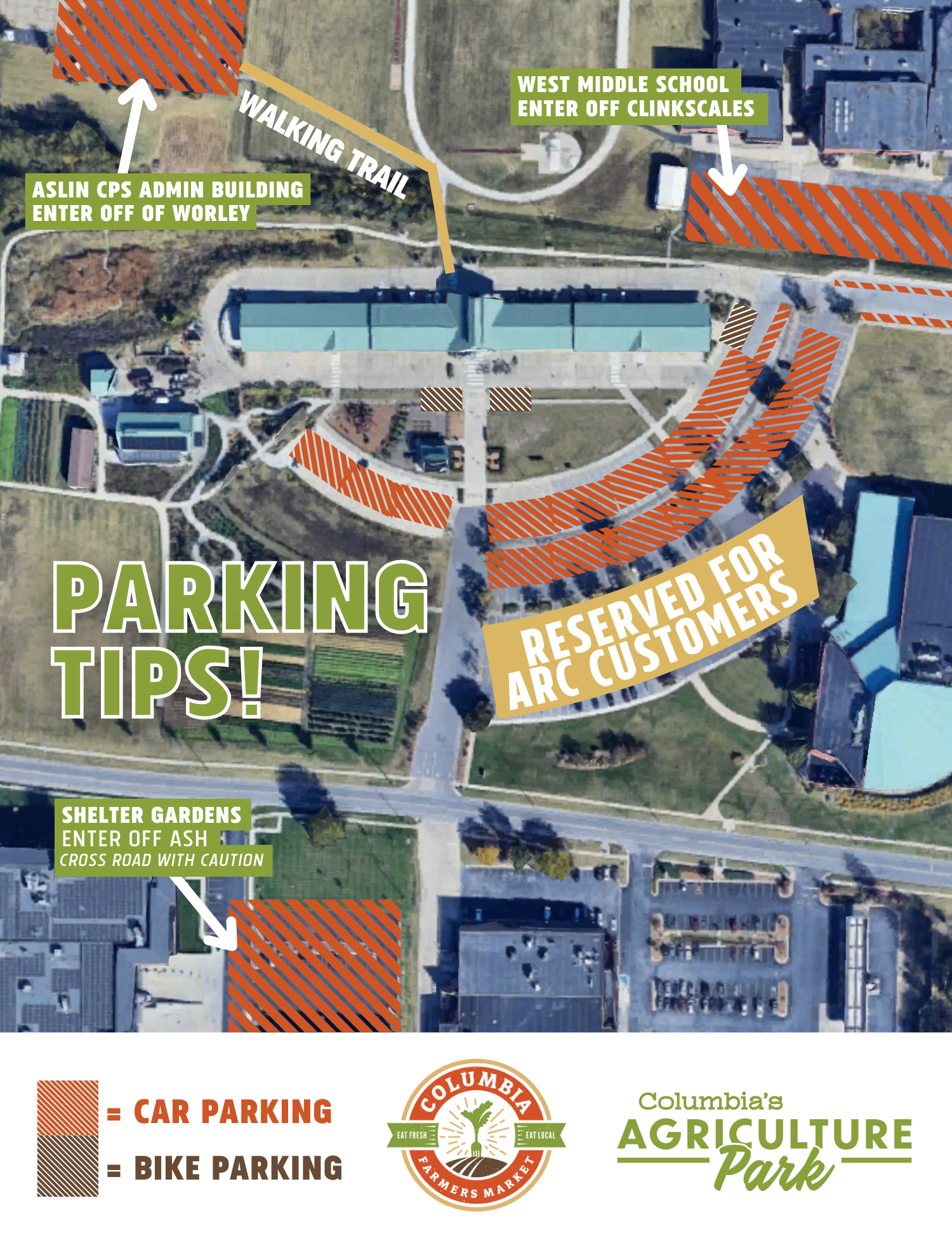 Parking at Columbia’s Agriculture Park can be a challenge. Here are a few tips to help you get to and from the site: